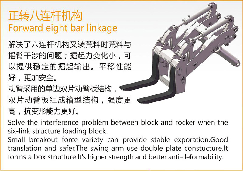 wheel loader WSM976T42 The driver A point is the height of 700mm away from the seat (normal sitting position). When the fork is flat ground,horizontal, we can see the fork and fork tip fork into 300mm way.In the lifting process, the driver can see the tip and fork, it is safe to work.wheel loader WSM976T42